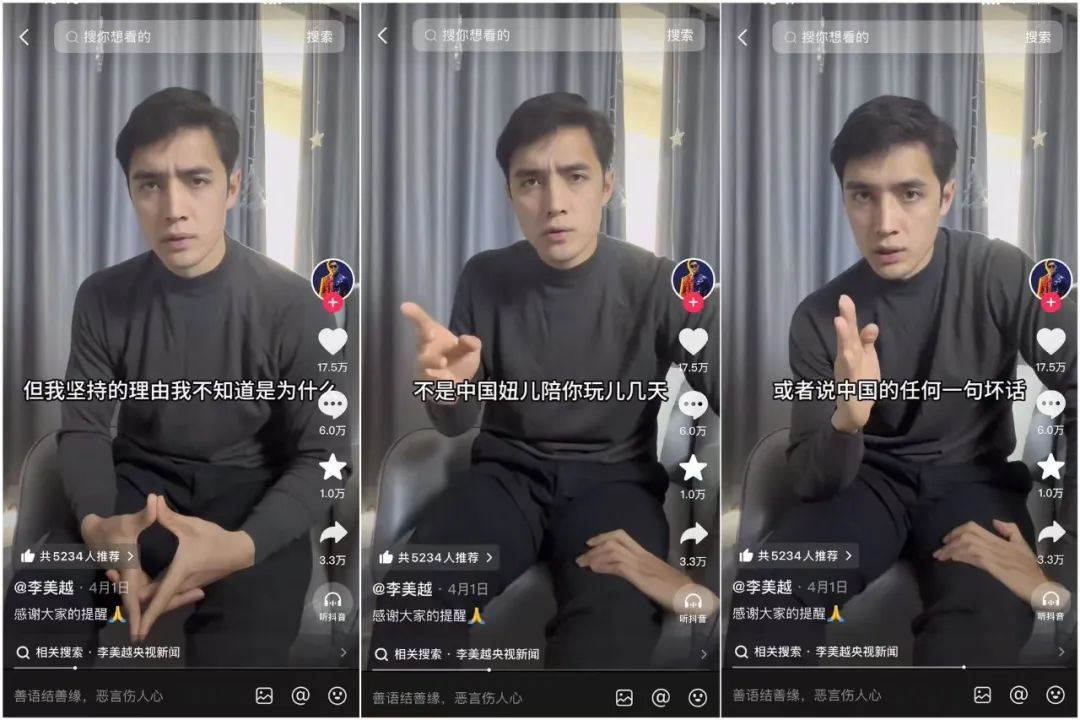 视频中,他放了几个影视剧片段,试图证明自己没有侮辱女性,只是文化差异;当时理发店的翻译只是想调节直播效果的氛围,为自己低情商道歉,但从来没有恶意抹黑过中国人和中国人。