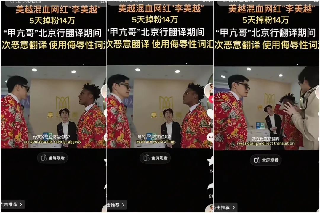 原因是甲亢哥游北京时,混血网红@李美越 身为站长,承担着导游和翻译的责任,但是从行程开始,他的翻译就有些不对劲。