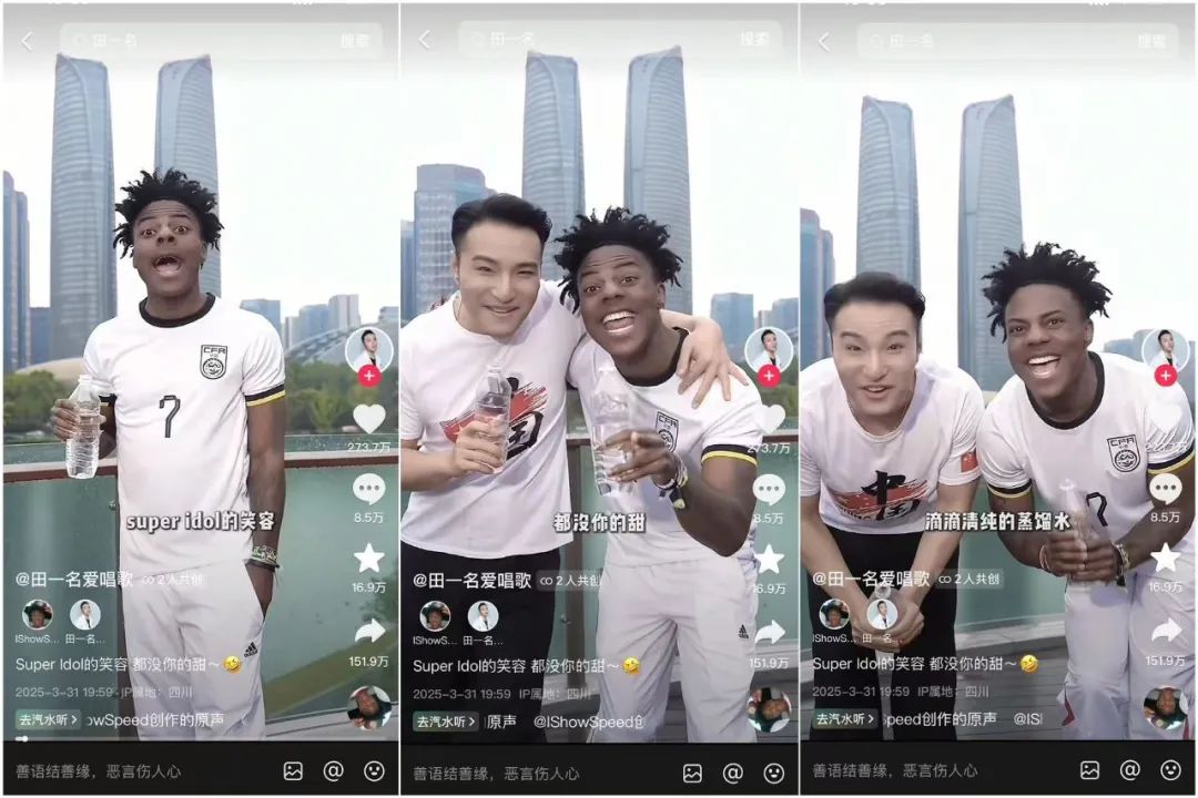 不只是疯狂的涨粉@iShowSpeed,@荣昌卤鹅哥(江哥喂甲亢哥中国行)跟随甲亢哥游玩五城,与其在成都合唱《爱情105》。°“你”和“小美”@KingHerucules等账户都迎来了流量爆发,@田一个爱唱歌的人,甚至是甲亢哥的随行保镖“小美”。