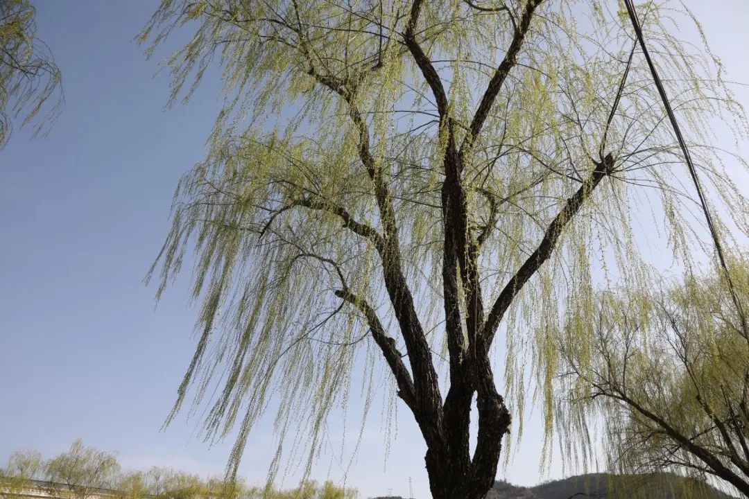 在马莲河畔,沉睡了一个冬天的垂柳醒来,细长的树枝上出现了一层新的绿色。嫩芽和嫩叶交织在一起,像丝绸的垂柳在风中翩翩起舞,形成了一幅美丽的画卷,让人流连忘返。