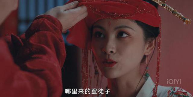 结婚时,一身红衣,曲蛮娘步伐一顿,掀开珠纱头帘,侧着脸看着旁边。