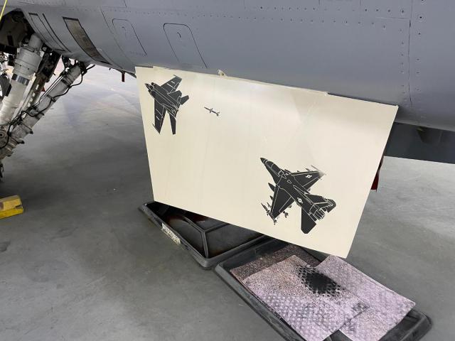 尾部右侧水平尾部前面绘有艺术装饰团队名单(由第一名 56 物流支援大队人员组成)、第 56 团队勋章和涂装完成日期(5) 月 22 日)。