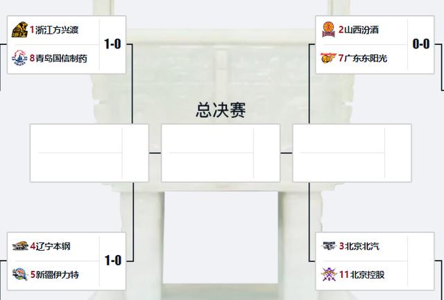 CBA 季后赛四分之一决赛的情况如下:上半区的两场比赛是广厦男篮对青岛男篮和辽宁男篮对新疆男篮;下半区的两场比赛是山西男篮对广东男篮,北京男篮对北京男篮。以上八支球队谁能突出重围?