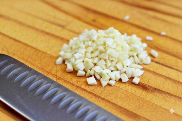 蒜去皮切成蒜末。