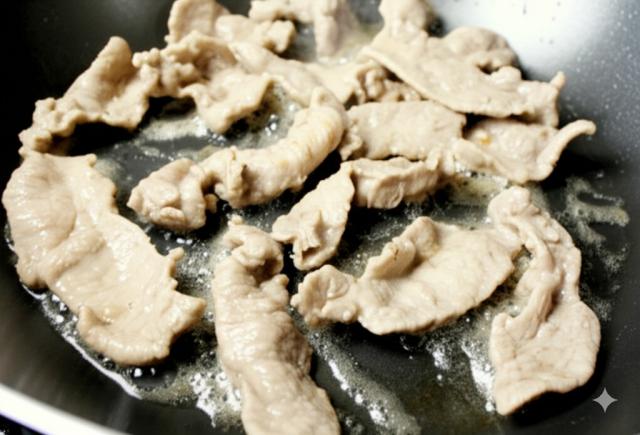 炒肉时要有足够的油温,快速滑炒可以防止肉质老化。