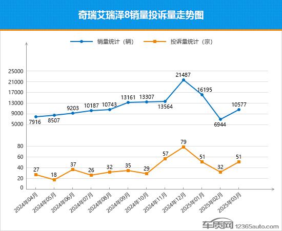奇瑞艾瑞泽在经历了“两连败”之后, 8 在 3 月球迎来了大幅反弹,环比上升。 52.3%,再次站在万台关口。艾瑞泽是今年前三个月。 8 累计销量 33,716 与去年同期相比,车辆上涨 14.5%,尽管销售趋势有所波动,但一直保持着旺盛的市场活力。从其近一年的销售和投诉走势可以看出,月投诉变化趋势与销售趋势相同,3 每月投诉数量也会反弹,口碑问题需要引起厂家的警惕。从 3 每月投诉销售比例的变化可以看到, 2 月数相同,低于 3 每月全部汽车投诉销售比例平均,投诉销售比例优于同期大多数汽车。伴随着 2025 艾瑞泽推出了这款车 8 配置进一步升级,增加了双音区语音识别和前排冷热扶手箱的基本功能,加强了产品的竞争力,有望带动其销量持续上升!