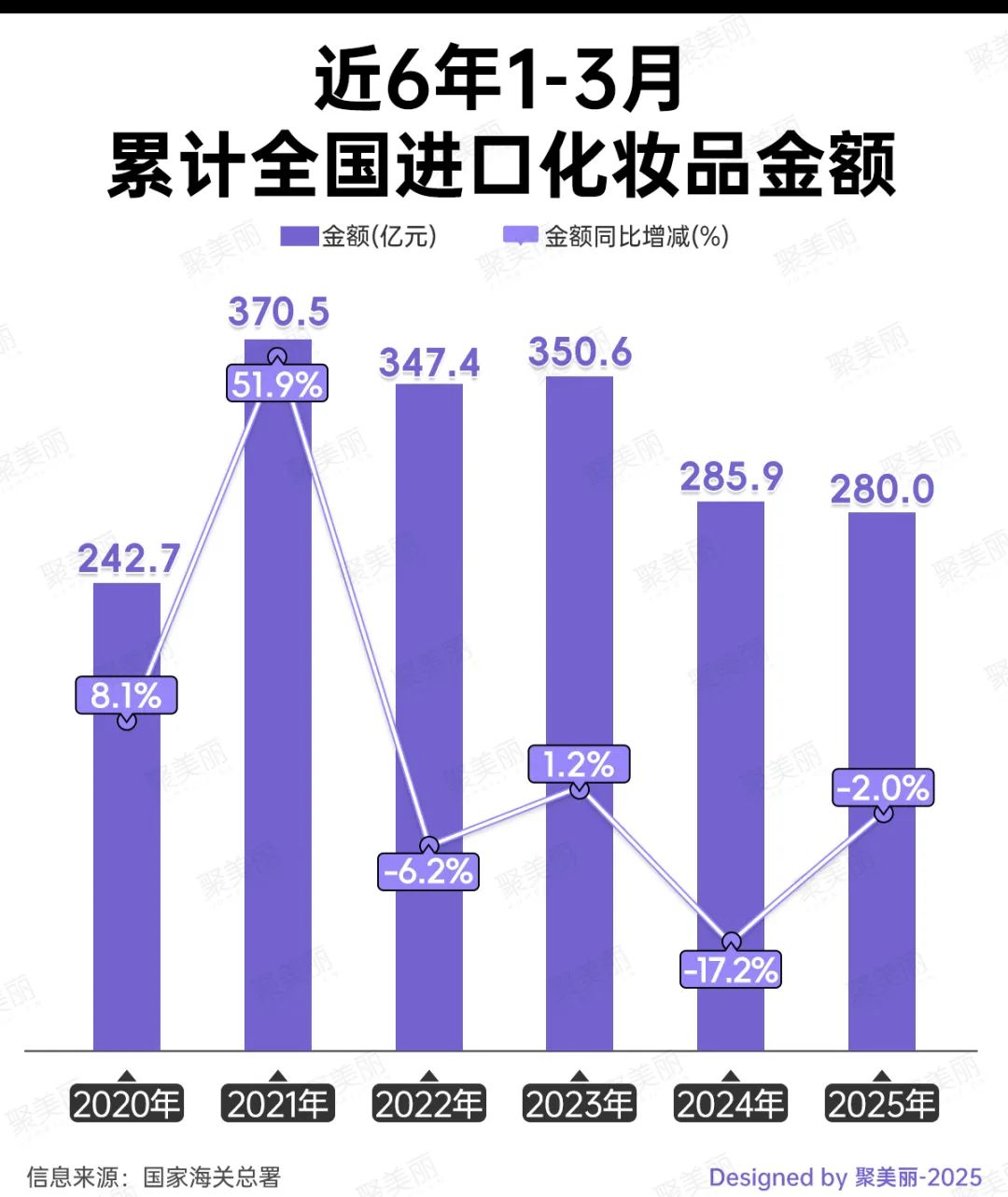 从前面的文章来看,2025年3月和Q1的整体表现并不尽如人意。即使进口化妆品数据在2025年1-2月呈现复苏迹象,聚美丽也在“增加14%!进口化妆品等来春天?文章已经进行了相关分析,不再赘述。
