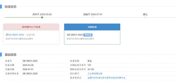 日前,工信部正式发布。 GB38031-2025《电动汽车动力电池安全要求》 2026 年 7 月 1 日本实施,新规将动力电池“不起火、不爆炸”改为强制性要求,被称为“历史上最严格的电池安全令”。