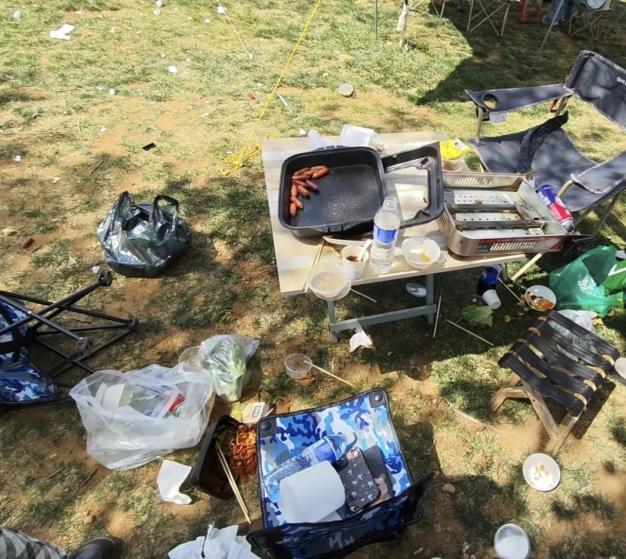 2025年4月6日,河北省石家庄一名妇女在野外露营时用卡式炉烤串。突然,卡式炉爆炸了,桌子上的食物和锅被炸飞了。幸运的是,人们没有受伤。