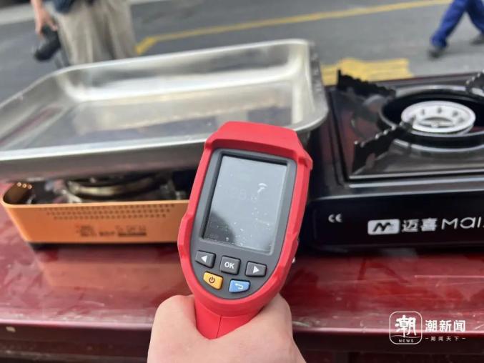 在实验现场,消防队员首先模拟了两个卡式炉并排放置,同时用于点火。测温枪测量了其中一个卡式燃气罐的外部温度为28.8℃。大约10分钟后,温度飙升至80℃。消防队员说:“在这种情况下,燃气罐内的温度可能已经达到了几百℃。在这种温度下,丁烷燃气罐内的丁烷已经开始蒸发,很快就会达到爆炸的临界压力。”
