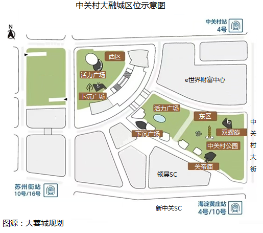 大融城项目备受关注,分为东、西两个区域,综合经营面积约20万mm²,聚焦餐饮、时尚奢华零售业务项目,大幅升级时尚购物水平,填补区域高端消费空白,连接2万m。²公园广场,以公园人文交流为核心驱动力,将商业、文化、生态元素相结合,打造市区罕见的开放式综合商业体。文化打卡点包括:双螺旋雕塑,关帝庙,中关(中官)传说等。原家乐福经营区将更新为精品超市。