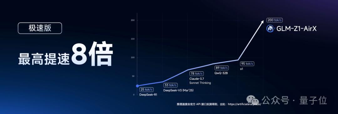 GLM-Z1-AirX(极速版):定位国内最快的推理模式,推理速度可以达到 200 tokens秒,比常规快 8 倍;