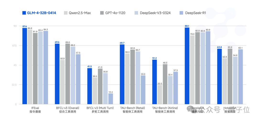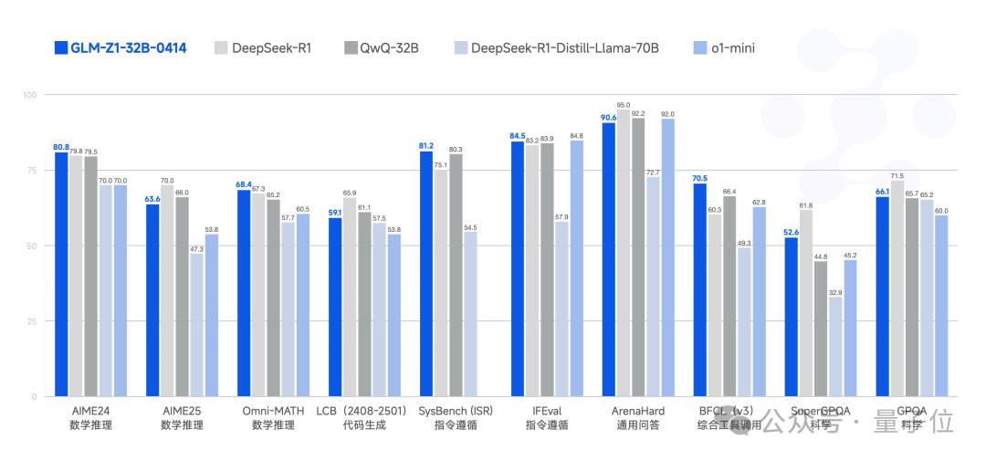 尽管只有32B参数,GLM-在某些任务中,Z1-32B-0414的表现堪比 671B DeepSeek-R1参数。