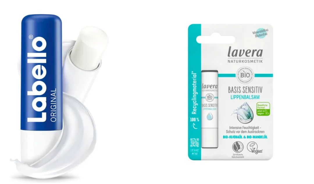 妮维雅 Labello 德国经典口红(左) Lavera 唇膏(右)