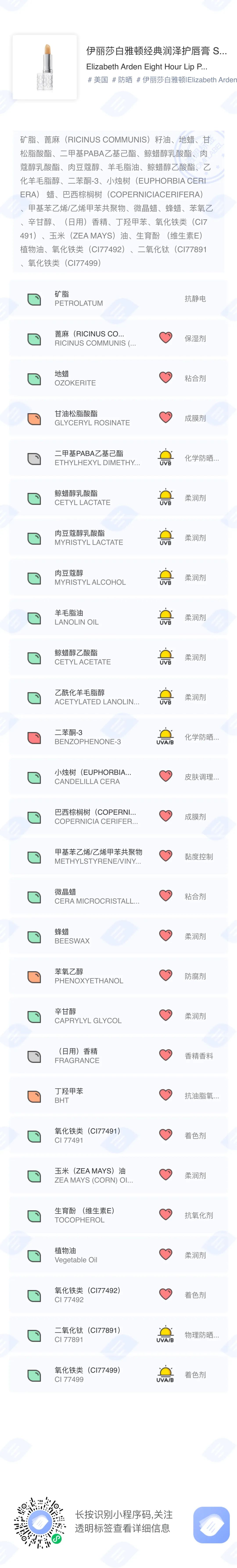 要判断口红是致癌还是健康,当然要从成分表入手。一般来说,口红中常见的成分可以分为 6 个别类别,蜡,油,色素和香料,防腐剂,抗氧化剂,其它作用剂。