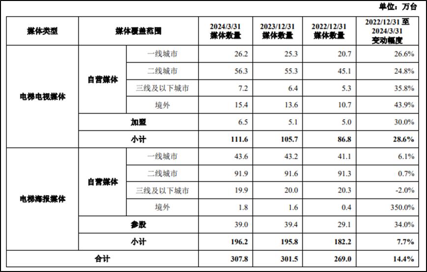 据2023年年报报道,分众传媒及其参股公司共有约308万台电梯海报媒体广告屏,与2022年相比仅增加63,000屏幕,增幅仅为2%,说明媒体增量已趋于饱和。