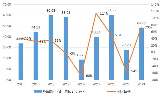 在利润方面,从2018年开始,分众传媒的净利润发生了更大的变化。2023年,企业归母净利润为48.27亿元,与2017年60.05亿元的高点相比,同样下降了近20%。