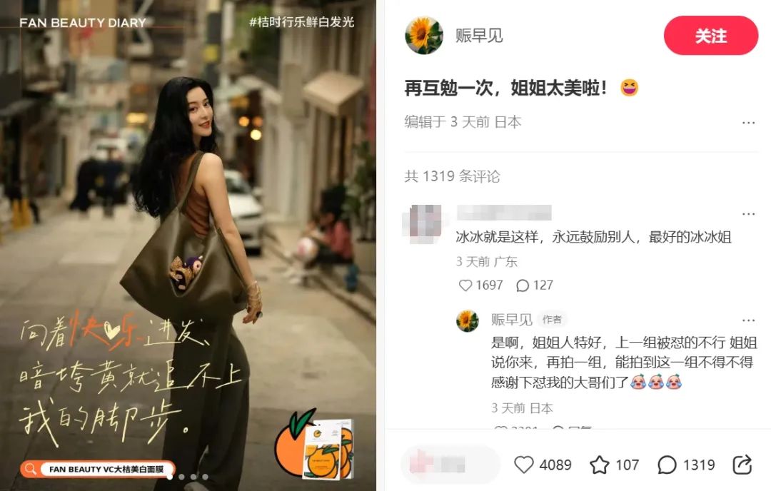 二次互相鼓励的笔记下,很多人觉得“居然都接了广告”,有粉丝给他们科普,这是范冰冰自己的产品。