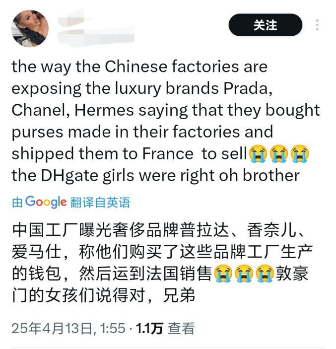几天前,当中国反击美国不断征收的相等关税时,中国的一些外贸制造商也开始反击TikTok。然而,他们反击的方法是向外国网民揭露奢侈品的真相。