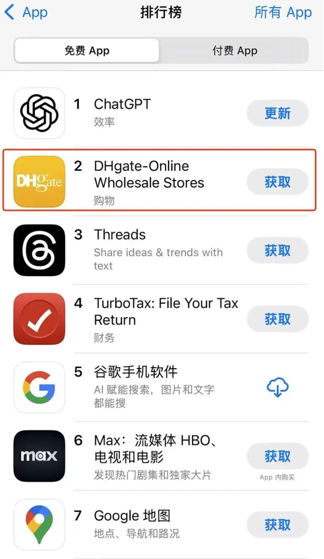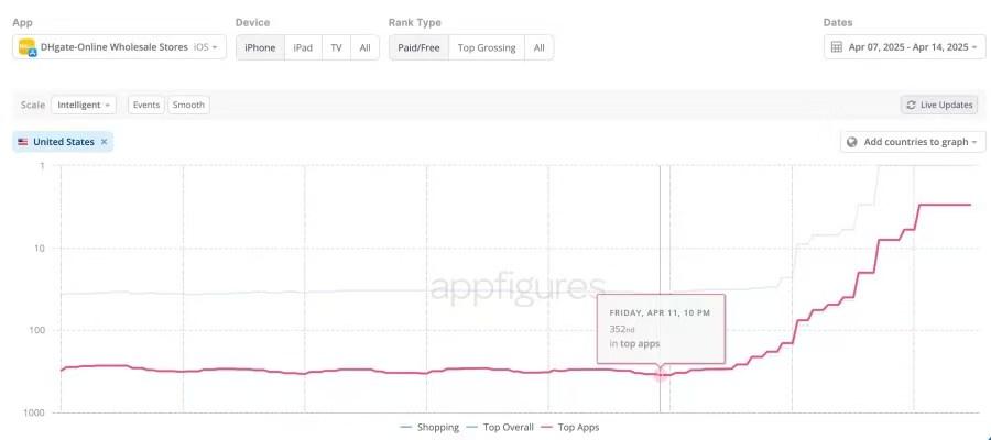 四月十五日,美区APP 免费的Store列表,在4月11日,它的排名从第352升至第2位。