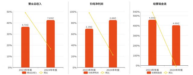 企业总营业收入为 7.83 亿元。归母净利润为 2.69 十亿元。经营活动现金净流入 4.00 与去年同期报告期经营活动净流入相比,亿元 5447.57 与去年同期相比,万元有所下降。 12.00%。