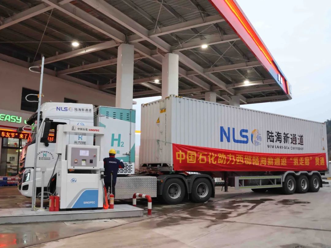 西部陆海新通道“氢过道”是中国第一条以氢能重卡为核心的干线物流通道。第一阶段的四个加氢站都是中国石化建设的,分别是重庆赶水加氢站、贵阳综合保险加氢站、百色伟鑫加氢站、南宁振兴加氢站,形成稳定的供氢网络。