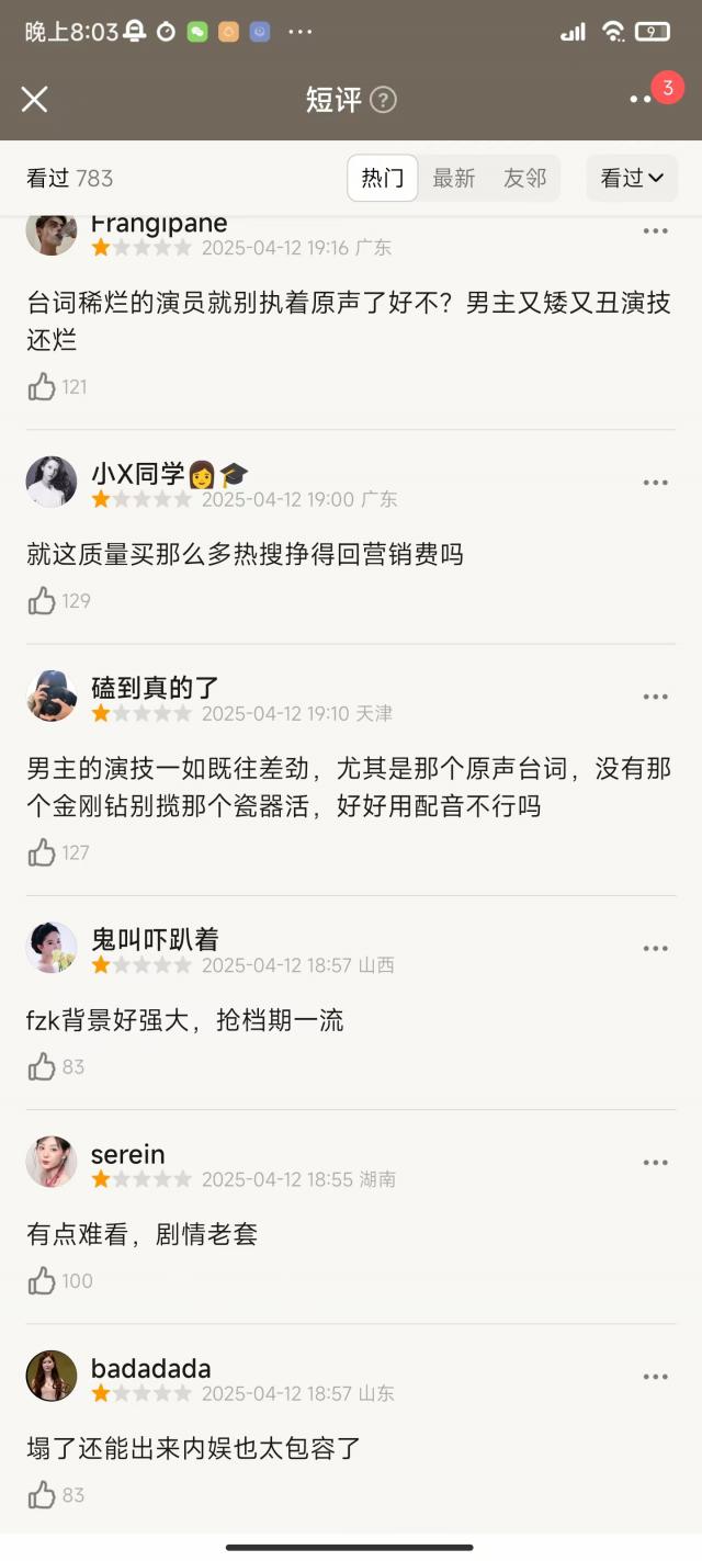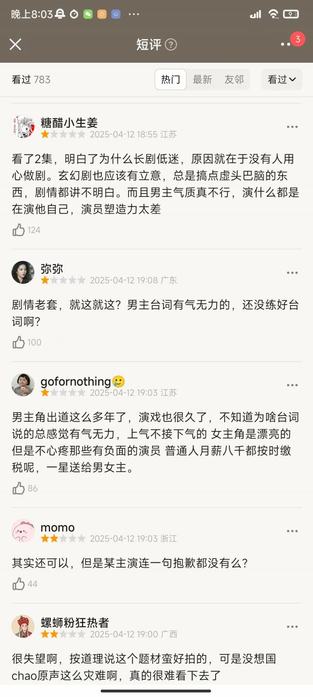 开播 5 集,获得平台飙升榜第一名。 1,站内热度 2 小时突破 5000。播出口碑也出来了,虽然平台在播出前给出的小标题是“梦回聊斋”,还有一个宣传点是“史密斯夫妇的玄幻版”,看起来很高级。然而,播出后,观众似乎并不买账。豆瓣刷评了一星,大部分观众都给了差评。他们觉得剧情很无聊,男演员的演技和原声台词都很差,还有介绍。 意 女主持人是有争议的性艺人。