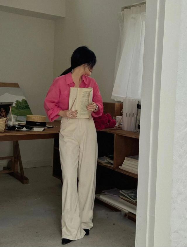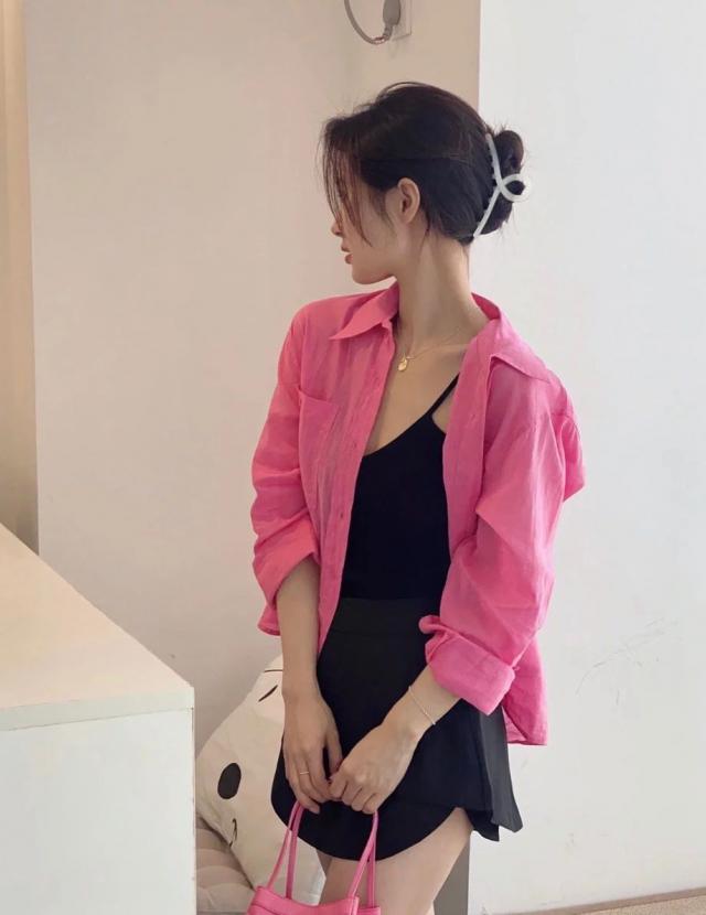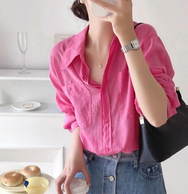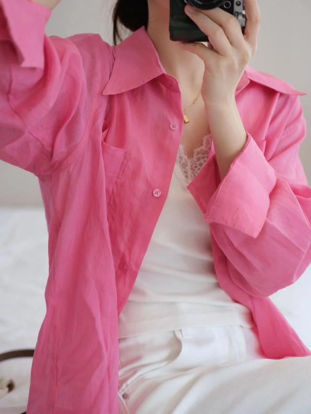 如此白皙的梅色衬衣一定不能错过。~