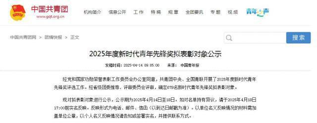 2025 拟表彰年度新时代青年先锋奖目标公示 榆林 1 人上榜
