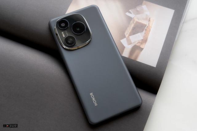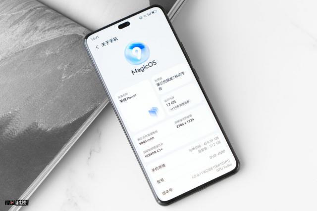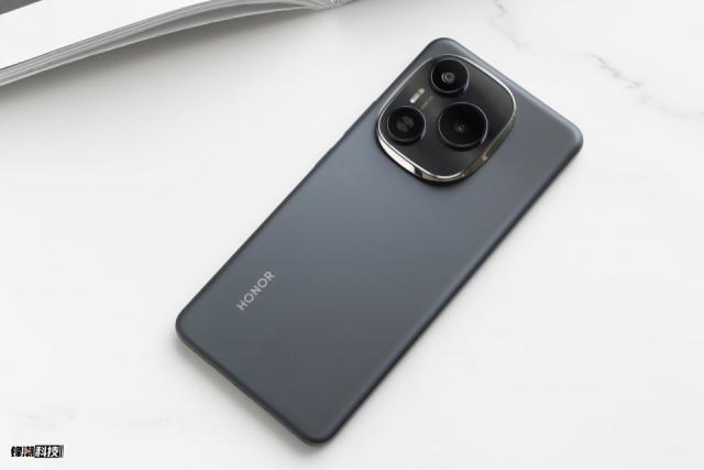 配色方面,荣耀 Power 拥有「雪原⽩」、「沙漠⾦」和「幻夜⿊」有三种选择。我们手中的「幻夜黑」配色方案选用磨砂材质的后盖,在光线充足的环境中还有一点深灰色的感觉,质地还在线。