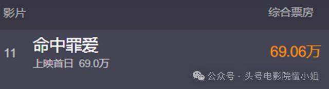 坏消息是,《命中罪爱》上映第一天,票房只有票房。 69 万。