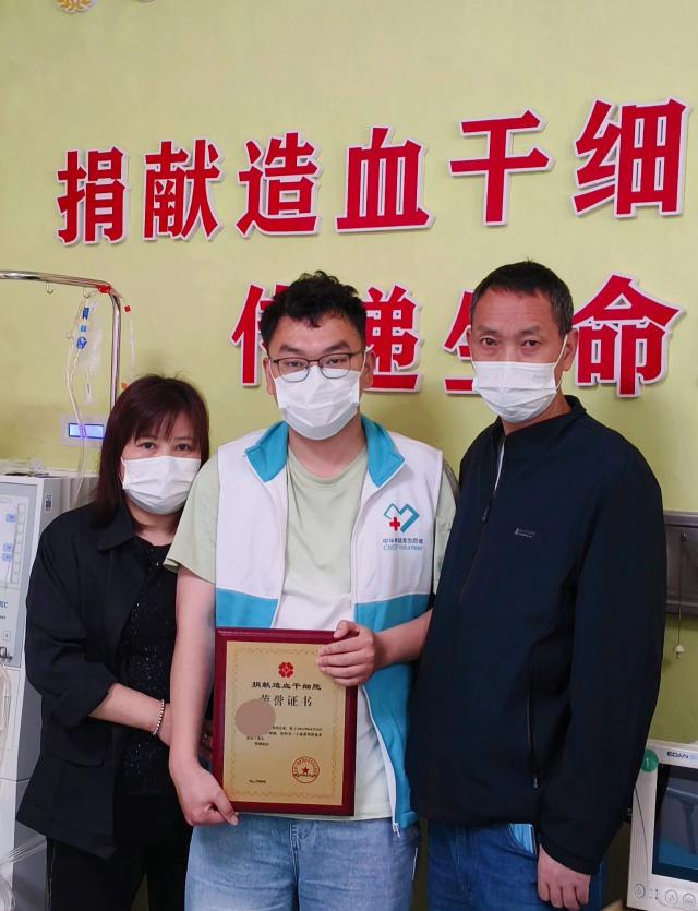 捐赠成功后,王磊与父母合影。