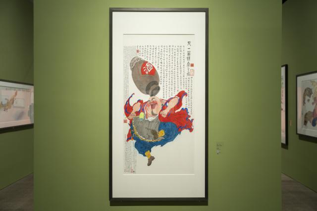 除了知名的属和莲花主题,展览还向公众展示了大龄黄永玉艺术探索的广度。而且他的很多画都凝聚了“画为形,文为魂”的创作哲学,画面喷薄的生命力与到处幽默哲学的题字相互碰撞,别有一番滋味。
