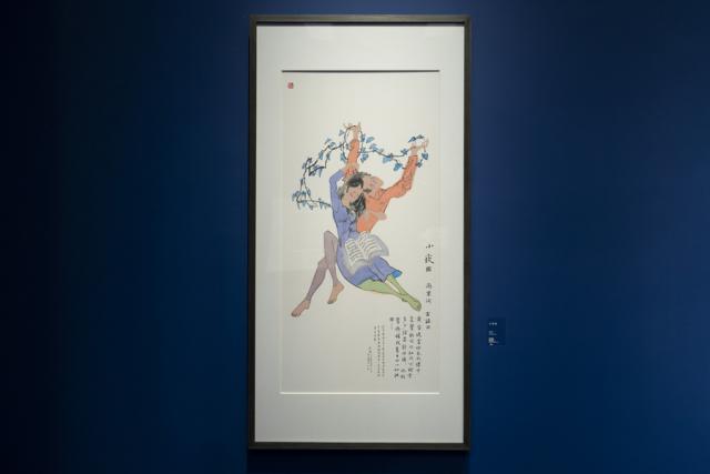 黄永玉生前最后一部作品,创作于 2023 年 5 月 16 日本的《小夜曲》,构成了展览的浪漫结局。画中,年轻男女依偎在藤蔓环绕的夜晚,摊开的乐谱定格了一段跨越世纪的青春岁月——起初,黄永玉用法国小号演奏小夜曲,向妻子张梅溪诉说自己的感受。据说画中的曲谱细节十足,当真能弹奏出来。图中特别注明了“雨果词,古诺曲”,写道:“78年前的老歌,黑妮居然沿着历史的道路给我闻到了原来的痕迹,真的不简单。"