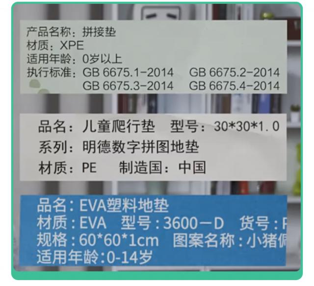 市场上的爬行垫材料,主要有 4 种:EVA、EPE、XPE、PVC。