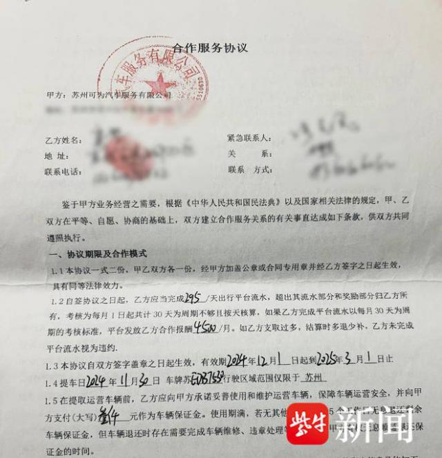 日前,苏州市民高先生向扬子晚报“紫牛问政”平台反映,他申请了网约车司机,被告知只需缴纳费用。 500 元押金可以“开工”,可以月入过万。然而,上路后,我发现很难完成“评价”。没想到一个月后,不仅车辆被强制收回,对方还以“评价不达标”为由解除了合同,网上交通流量和押金都被扣除了。"辛苦了一个月,怎么会觉得自己被套路了?"