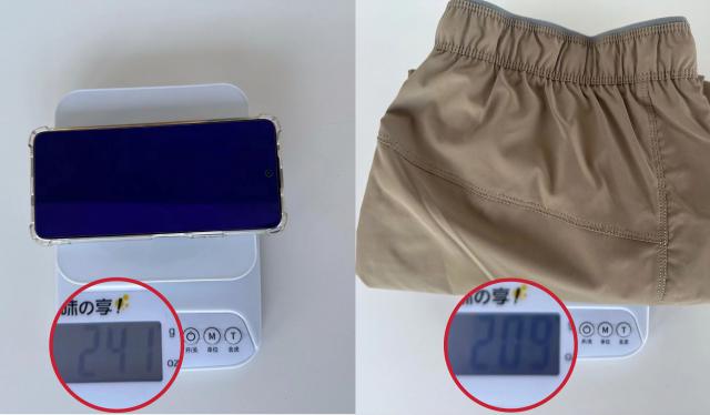 而且重量超轻,整条裤子只有 209 克,比一部手机还轻,穿在身上零重量,轻盈,就像不穿一样爽。