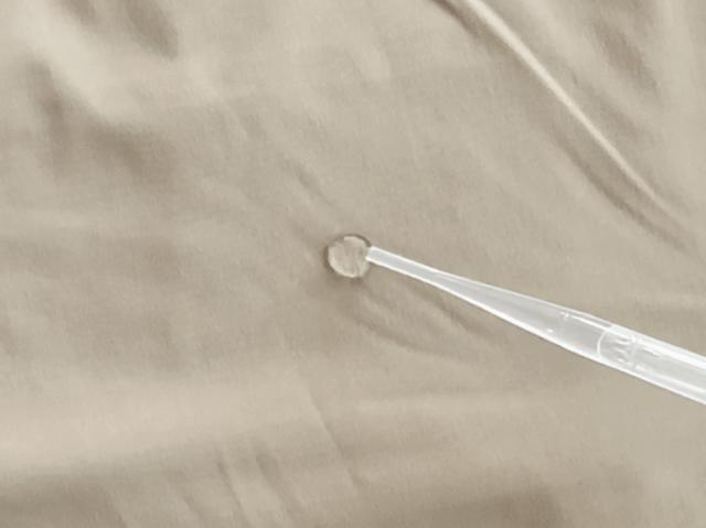 透气性极佳,为直观感受裤子的透气性,我们做了一个实验: