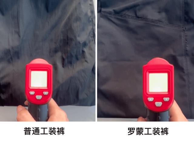 普通工装裤的温度是 22 ° C,而且罗蒙工装裤是 18 ° C,整整相差了 4 ° C。
