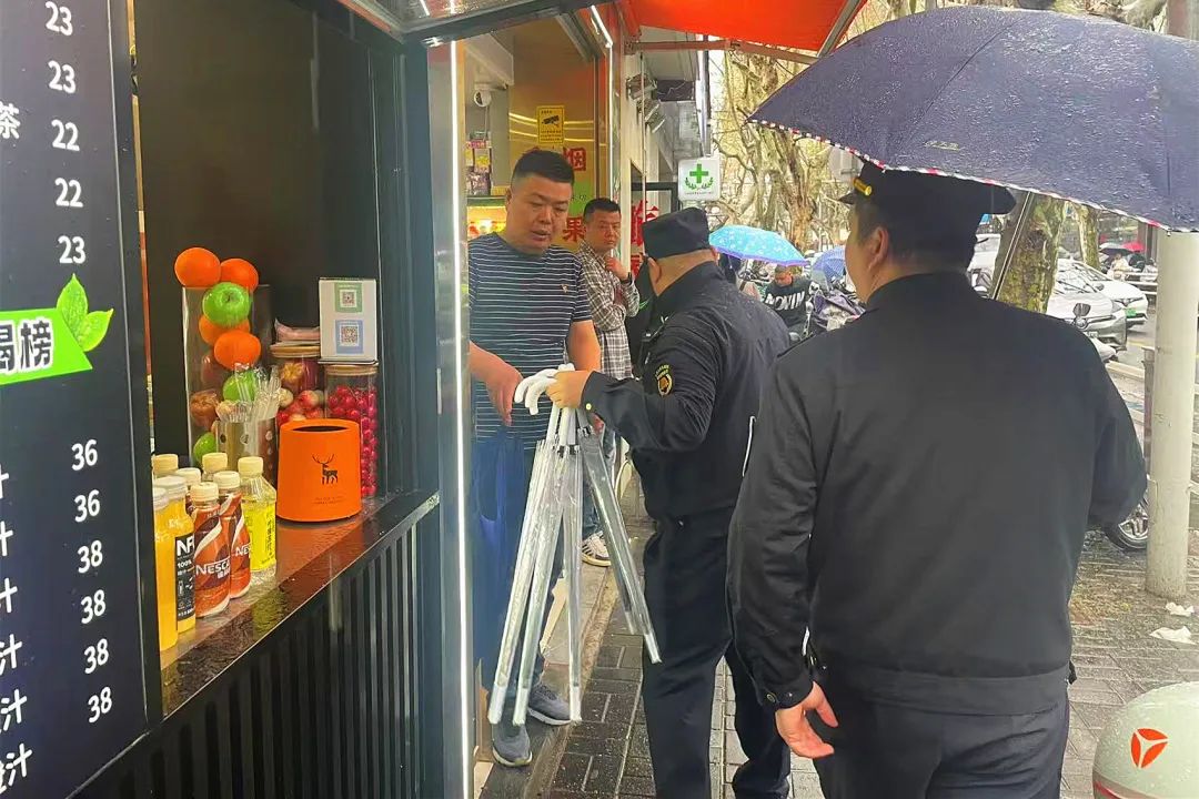 近日,静安寺街道综合行政执法队(城市管理行政执法中队)在日常检查中发现,为了扩大经营空间,一些商店在华山路周边放置产品和货架,影响市民通行,造成安全隐患。此外,一些影响市容环境和社会秩序的情况,如乱贴、乱发等,也再次“复活”。