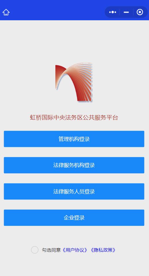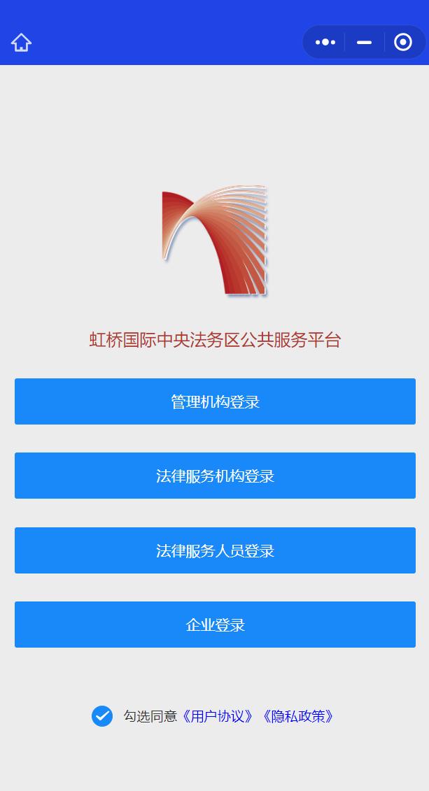 搜索虹桥国际中央法务区公共服务平台微信小程序。