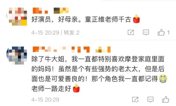 马良说,作为一名演员,母亲童正维塑造了许多成功的角色,许多熟悉和深爱她的观众。“愿她远离病体沉重,无尘烦恼,与先行一步的爸爸天上再见,回到青丝,永远陪伴青春。”