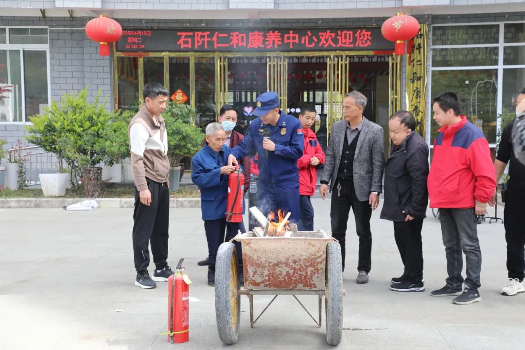 四月十五日,铜仁市石栋县消防救援大队走进仁和康复医院,为医院工作人员进行了“理论” 为银发人群提供“安全保护伞”,实践“消防安全专题培训”。在培训过程中,消防宣传员从典型火灾案例入手,阐述了养老机构开展消防安全工作的必要性和重要性,指导养老机构严格落实消防安全责任,推动养老机构从业人员提高消防安全工作能力,重点关注养老机构的火灾特点、消防安全日常管理、火灾预防、初期火灾扑救、火灾疏散逃生、消防车通道管理等。加强日常消防安全检查。演练阶段,消防员现场讲解了灭火器的“提、拔、握、压”四步操作方法,指导从业人员掌握连接使用消防栓水带、抓水枪等实践经验,并安排全体工作人员和老人逐一进行实践练习。消防员耐心指导,及时纠正不合规行为,确保大家能够灵活运用消防设备的使用技巧。