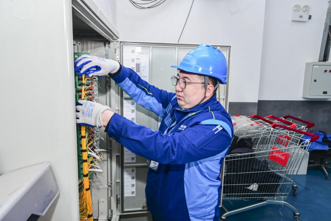 △图为沈阳月星环球港一期万兆小区沈阳移动工作人员试点调整。