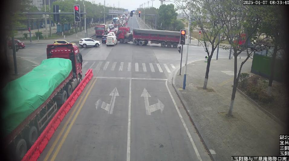 监视器显示,4月7日上午8时33分40秒,玉阳路和三里港的路口严重拥挤。