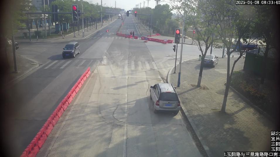 监视器显示,4月8日上午8时33分40秒,玉阳路与三里港路交通状况良好。