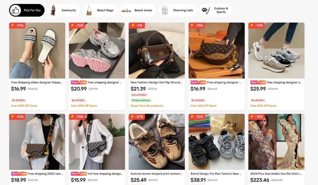 打开敦煌网页,有一种亲近的大牌仿古风味,仿佛走在县城的路边摊上,看到很多minmin和dor(擦边Dior),它们的价格比temu稍微贵一点,而且比亚马逊便宜。