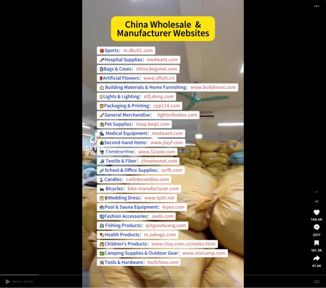 需要强调的是,这里的“病毒”并不贬义,而是指爆炸性的传播,非常有效地促进了电子商务的流量。具体来说,很多TikTok视频都在向美国等国家的客户介绍全球奢侈品行业的制造流程,吸引美国用户以“做中间商,低价买大牌”购买。