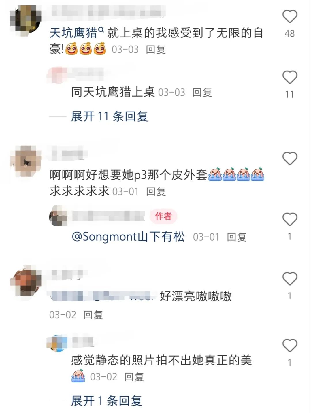 山下有松,采取更灵活的方式。他们不签长期代言人,也不局限于传统明星。相反,他们邀请各个领域、不同年龄的女性意见领袖以“品牌好友”的形式合作。吴彦菁、咏梅、李娜、文淇...品牌与他们自由交谈的生活理念,实现了破圈传播。比如在一个小红书笔记里,很多网友说他们被文淇背着一个漂亮的包种在山下。