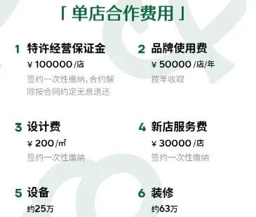 千吉的加盟要求不低。以千吉门店合作费为例,加盟商每年支付品牌使用费5万元。此外,特许经营保证金为10万元,现烤、装修、收银等设备成本约为25万元,装修成本约为63万元。经过计算,开一家120平米的千吉,总投资约110万元。